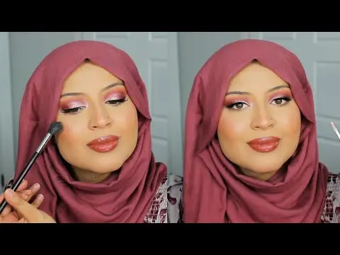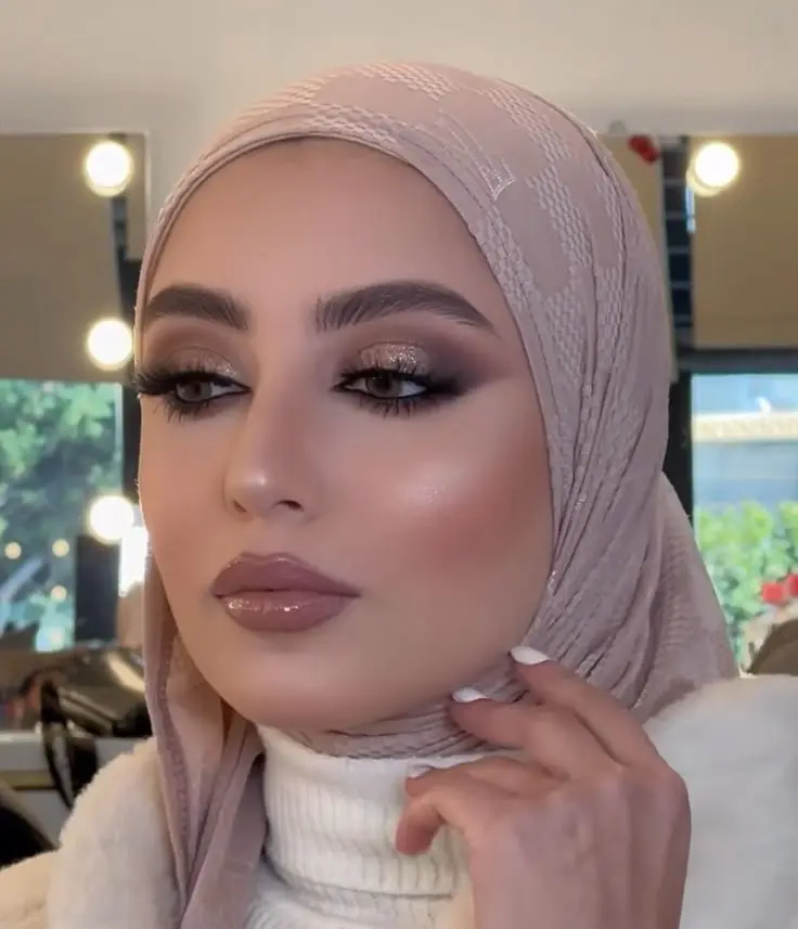 Finish with fluttery lashes and a nude pink lip for balance. This makeup style pairs beautifully with modest party outfits and hijab looks, making it perfect for women who love understated glam.