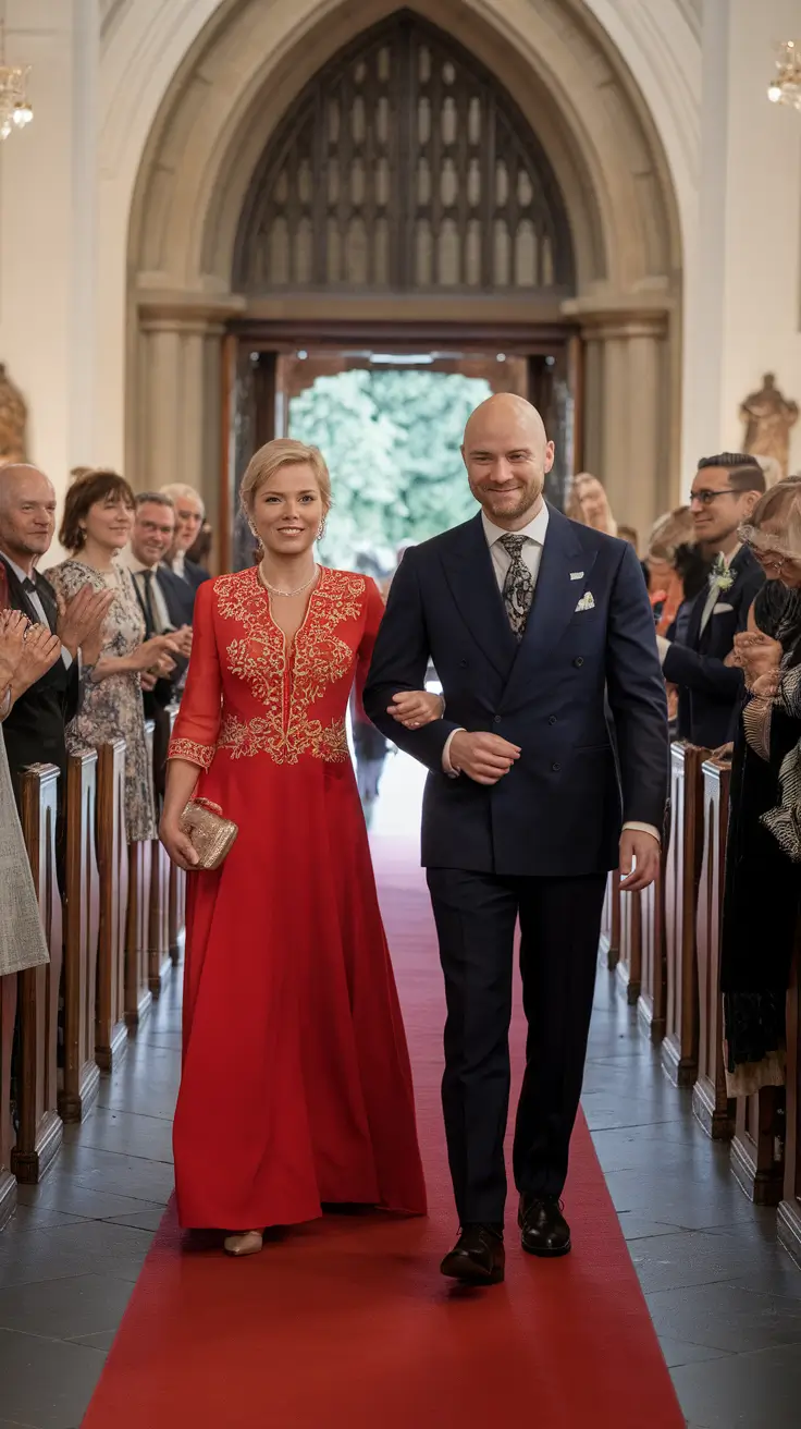 Embroidery introduces intricate patterns that elevate the dress into something truly special. Delicate stitched florals, geometric motifs, or artistic threadwork can transform a simple silhouette into a memorable piece of fashion. These designs often reflect heritage craftsmanship that celebrates tradition while remaining elegant enough for modern wedding settings. When placed thoughtfully along the neckline, sleeves, or hemline, embroidery adds depth without overwhelming the dress. Rich fabrics such as satin, silk, or velvet enhance the vibrancy of red while allowing the embroidered elements to stand out beautifully.