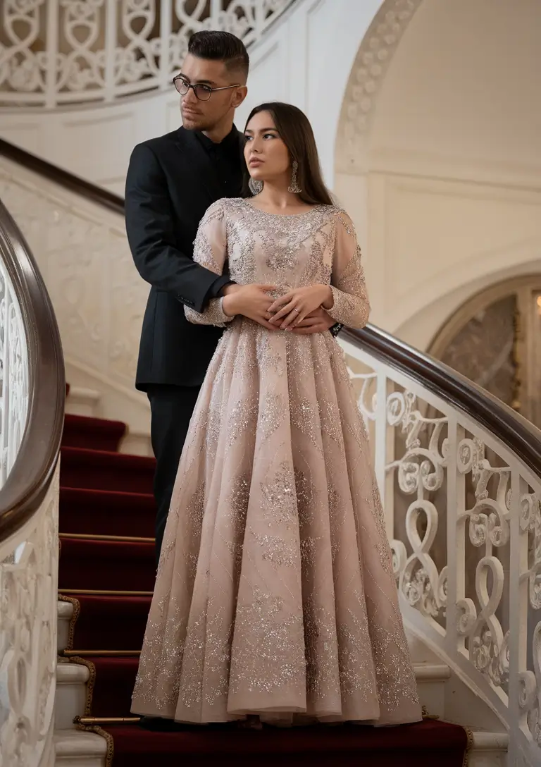 The beauty of champagne fashion often comes from its luminous fabrics and delicate detailing. Satin, silk, and softly textured materials allow the color to shimmer subtly as the wearer moves through the venue. A gown with elegant draping, soft pleats, or a flowing skirt can capture the romantic atmosphere of an evening celebration. Instead of relying on dramatic shapes or bold embellishments, champagne outfits rely on graceful movement and understated detail. This approach creates a timeless silhouette that feels effortlessly elegant while maintaining the calm sophistication expected at a wedding gathering.