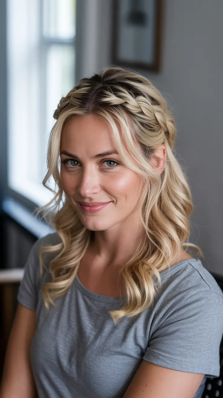 Romantic Crown Braid with Loose Curls
