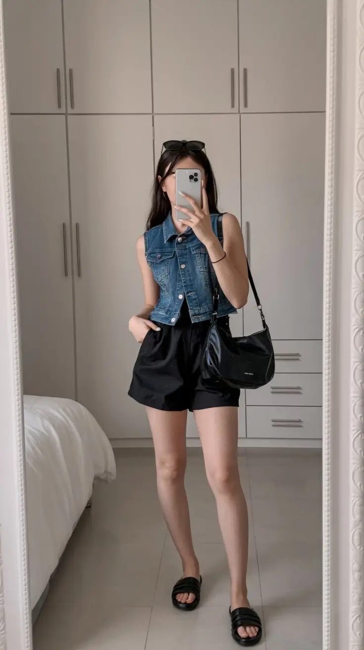 Denim vests are making a strong comeback in 2026 summer fashion, and when paired with relaxed shorts, they create the perfect off duty aesthetic. This look blends structure with comfort, offering a balanced outfit that feels both casual and intentionally styled. A denim vest adds a touch of edge to your outfit, especially when worn over a simple tank top or even styled solo for a bold summer statement. The relaxed shorts bring softness to the look, ensuring it remains wearable for everyday activities like shopping, traveling, or meeting friends. The combination works especially well in warm weather because it allows breathability while still maintaining a fashionable structure. This outfit is not about overthinking style but rather embracing simplicity with a modern twist. The denim texture adds visual interest, while the shorts keep the silhouette easy and relaxed. Accessories can be minimal, such as a crossbody bag or small hoop earrings, allowing the outfit to stay grounded and functional.