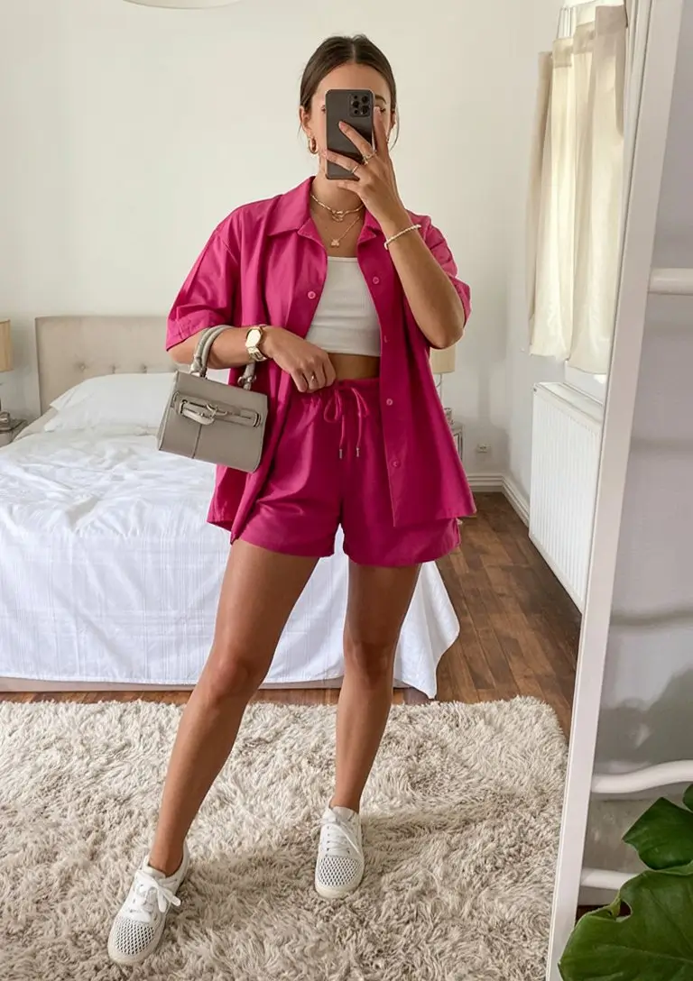 What makes soft pink sets especially appealing is how versatile they are for different occasions. For a casual daytime look, pairing them with simple white sneakers or flat sandals keeps the outfit fresh and approachable. For a slightly elevated style, delicate heels or minimal strappy sandals can instantly refine the look, making it suitable for brunches, gatherings, or summer events. Accessories should remain soft and minimal, such as pearl details, dainty jewelry, or a small neutral bag that complements rather than competes with the outfit. You can also mix and match the pieces separately with neutral basics, giving you more styling options while still maintaining that feminine aesthetic. This makes the set both stylish and practical for everyday wear. Overall, soft pink sets represent a light, graceful, and effortlessly wearable summer style that feels fresh, modern, and naturally elegant.