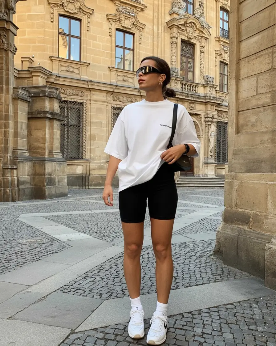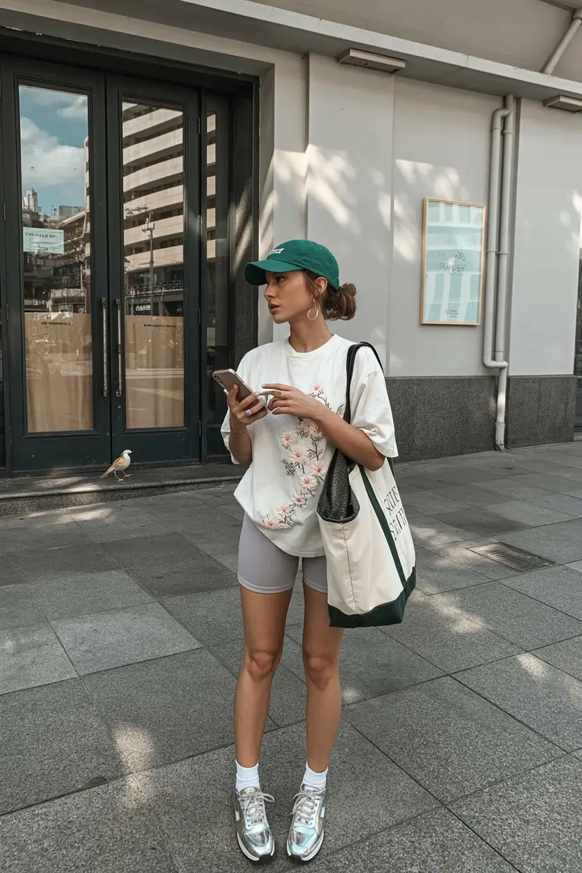 Styling this look is about creating a cohesive urban-sport aesthetic. Neutral tones such as gray, black, or beige make the outfit versatile and easy to accessorize, while bolder tones like cobalt, blush, or olive add personality. Sneakers in white or matching tones enhance the street-ready feel, and minimal accessories like baseball caps, crossbody bags, or subtle jewelry complete the ensemble without overpowering the casual vibe. Layering with a lightweight jacket or oversized coat can add dimension and warmth, maintaining comfort while keeping proportions modern.