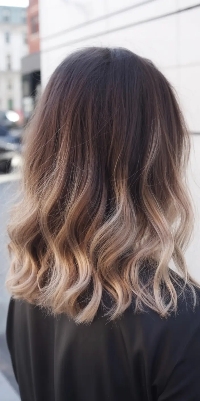 Styling Soft Neutral Blonde Gradient Waves is simple yet impactful. Loose waves created with a large-barrel tool add texture and movement while emphasizing the smooth color transition. A soft shine spray enhances the reflective quality of the blonde, making the hair appear healthy and luminous. This hairstyle works well for both everyday wear and special occasions, offering versatility without complexity. The neutral blonde tone complements a wide range of skin tones and eye colors, making it a safe yet stylish choice. Maintenance involves regular conditioning treatments to keep the ends hydrated and glossy. Because the root remains slightly deeper, grow-out appears natural and blended, reducing the need for frequent touch-ups.