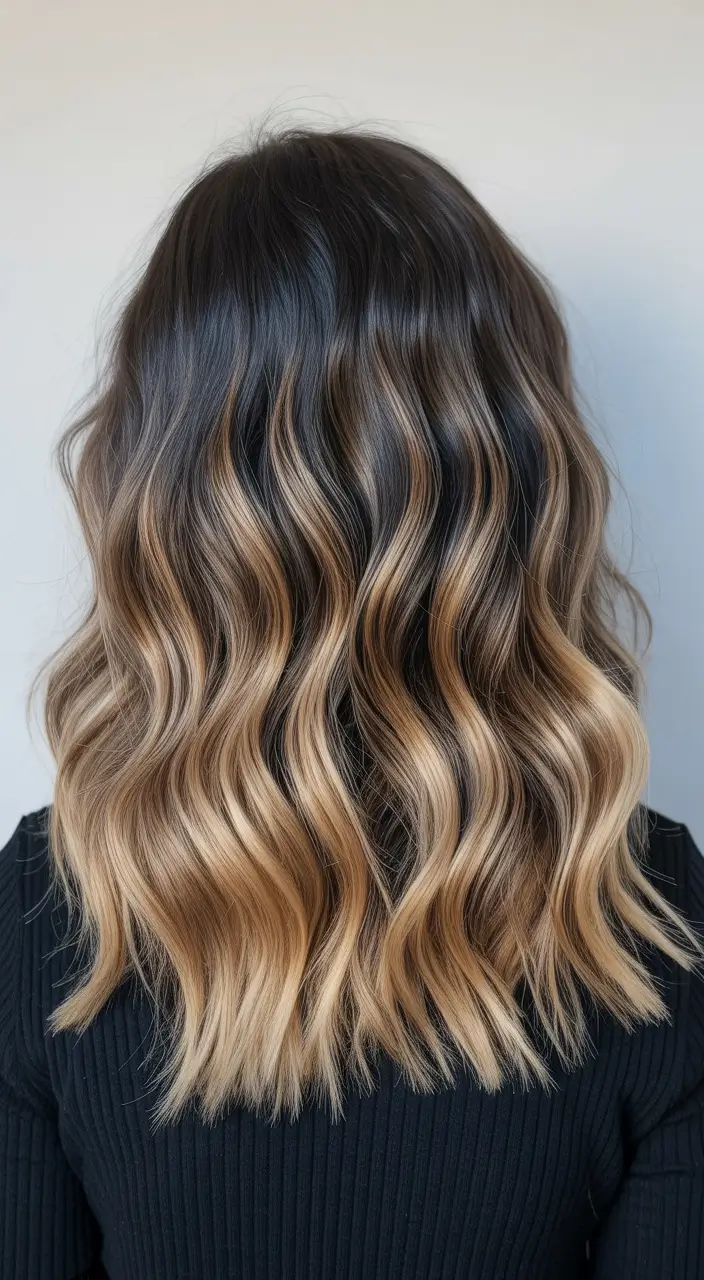 This hairstyle symbolizes warmth, approachability, and effortless beauty. The caramel ribbons create depth without appearing dramatic, making the look refined yet inviting. Pinterest users often save this style for its natural glow and romantic feel. It works beautifully for those wanting to brighten their appearance while maintaining a grounded, sophisticated base. Warm Caramel Ribbon Ombre Waves capture the essence of spring sunshine, making them a timeless and flattering choice for the season.