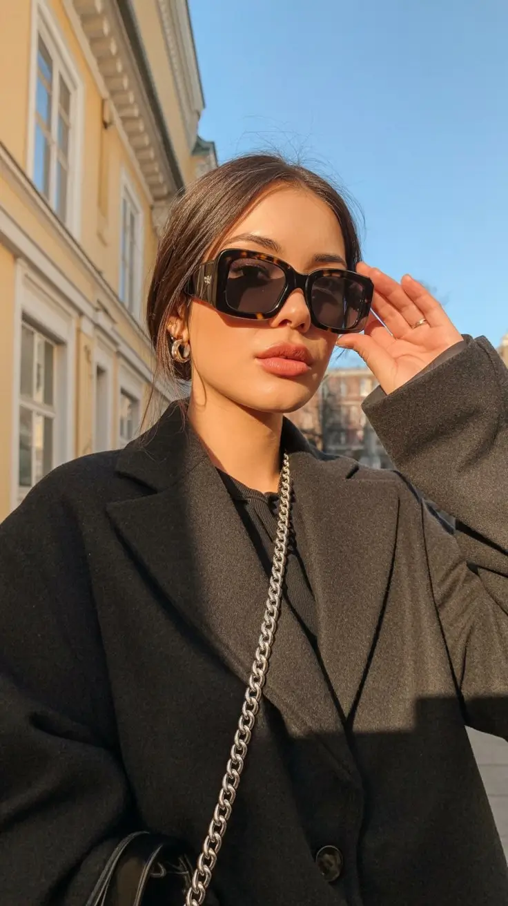 What makes these frames so effective is their ability to instantly refine even the most basic looks. A simple outfit can feel elevated and thoughtfully styled the moment you add sharp black sunglasses. They create contrast, add structure, and draw attention in a subtle yet impactful way. This makes them especially appealing for women who prefer a minimal wardrobe but still want to make a lasting impression through small details.