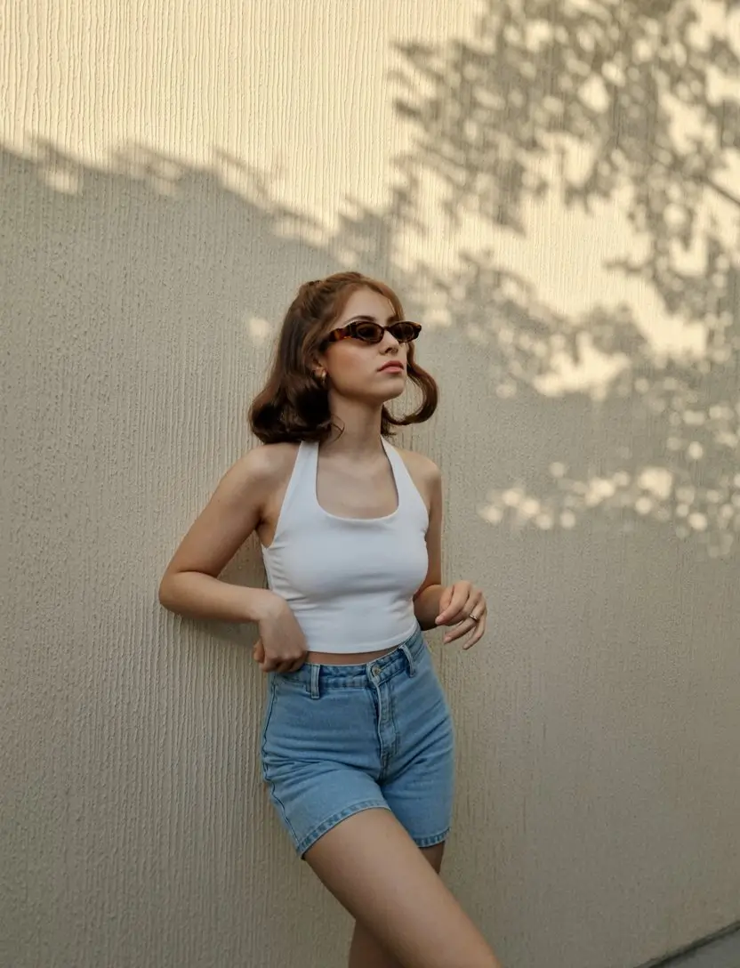 A clean white tee paired with denim shorts creates a timeless summer outfit that feels effortlessly stylish and universally flattering. This combination is rooted in simplicity, yet it carries a sense of quiet confidence that makes it stand out in a subtle way. The crispness of the white tee brings freshness and clarity to the look, while the denim shorts add a relaxed and practical element that suits warm weather perfectly. Together, they form a pairing that feels natural and easy, making it a go to choice for those moments when you want to look put together without overthinking your outfit.