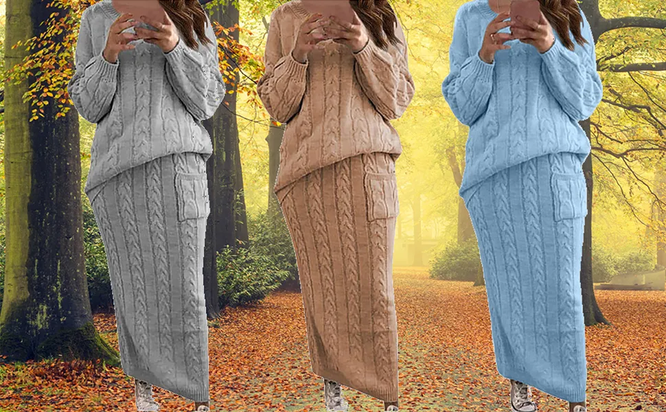 Soft Pastel Sweater Set with Relaxed A Line Midi Skirt