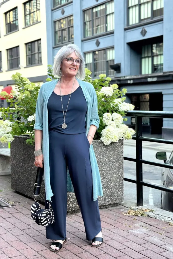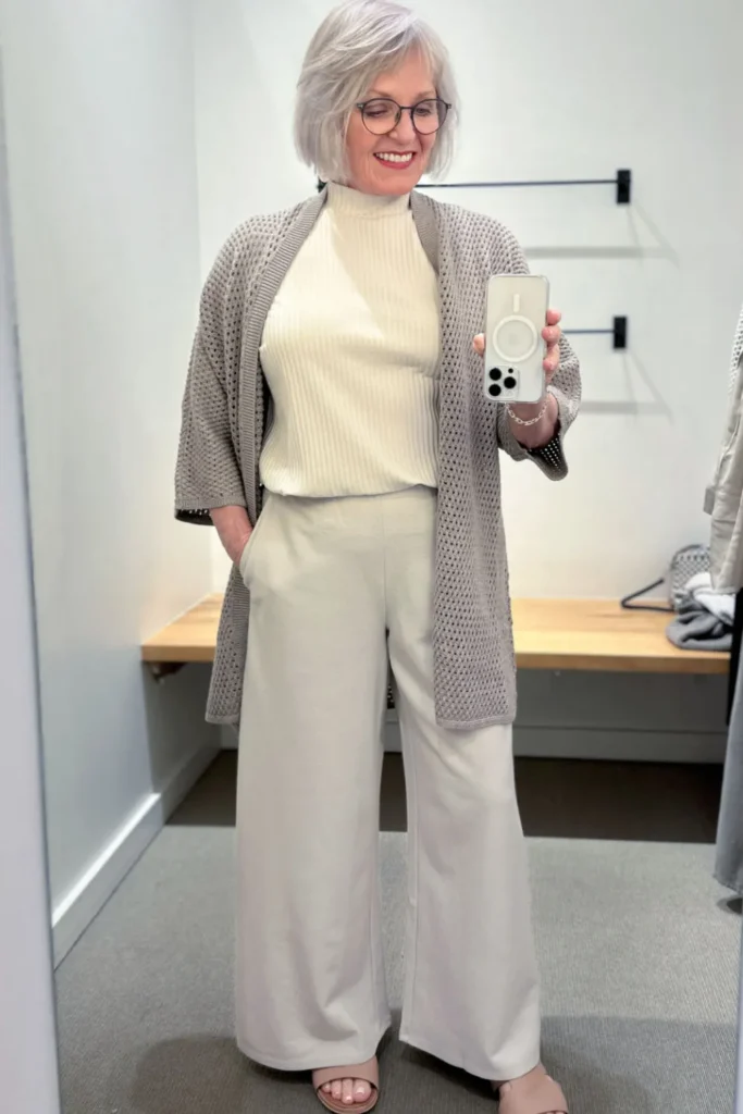 Soft cashmere cardigans provide luxurious lightweight warmth while maintaining graceful silhouette layering that feels elegant and comfortable for mature spring wardrobes. Fine cashmere blends create gentle softness against the skin while offering breathable insulation ideal for transitional seasonal temperatures. Spring 2026 Pinterest styling highlights cardigans in calming tones such as soft lilac, creamy oatmeal, and pale blush, allowing mature women to incorporate subtle seasonal color while maintaining timeless sophistication and versatile styling options.