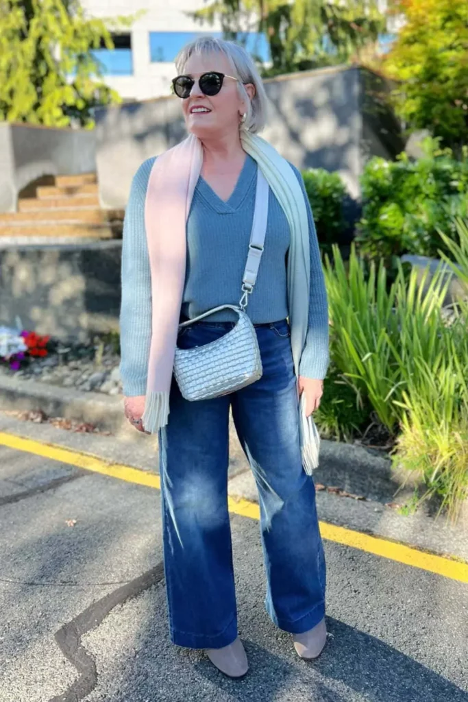 Soft pastel sweater sets provide coordinated cozy styling that feels polished, feminine, and effortlessly elegant for mature spring wardrobes. Lightweight knit twin sets featuring matching cardigans and shell tops create refined layering while maintaining breathable warmth ideal for transitional seasonal temperatures. Spring 2026 Pinterest trends highlight sweater sets in calming pastel shades such as mint green, baby blue, and blush pink, allowing mature women to embrace seasonal color palettes while maintaining timeless wardrobe harmony and sophistication.