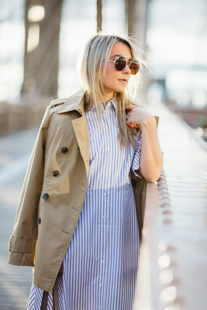 Lightweight trench coats remain iconic spring layering staples because they provide timeless elegance while offering practical warmth during unpredictable seasonal weather. Soft cotton or water-resistant trench fabrics create polished outerwear silhouettes that enhance outfit structure while maintaining comfortable breathability. Spring 2026 Pinterest inspiration highlights trench coats in classic shades like camel, warm taupe, and soft olive, offering versatile styling options that coordinate beautifully with casual chic wardrobe combinations suitable for everyday outings.