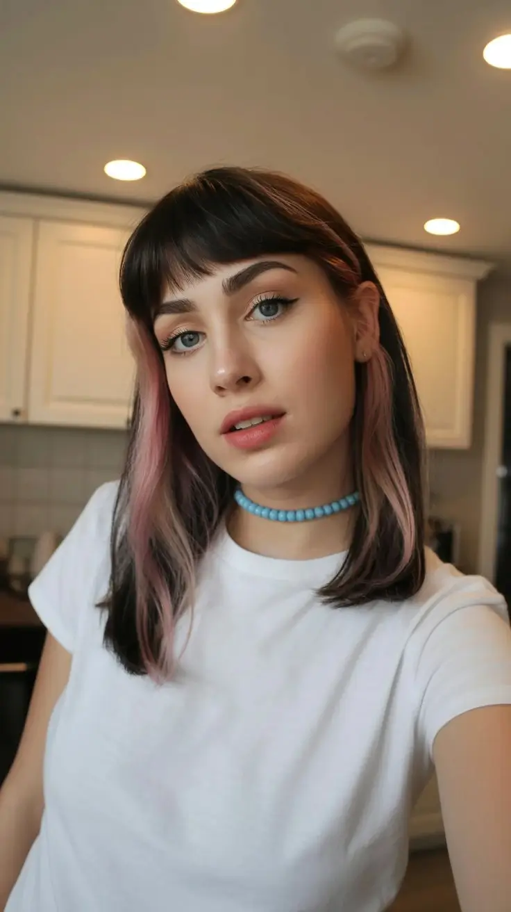 High contrast blonde money pieces are designed to instantly brighten your look by placing lighter strands right at the front of the hair. This technique creates a noticeable difference between the face framing pieces and the rest of the hair, giving a bold yet flattering effect. When combined with soft waves, the contrast feels slightly diffused, making the overall style more wearable while still maintaining its standout appeal. The waves help blend the transition just enough to keep it from feeling too harsh.
