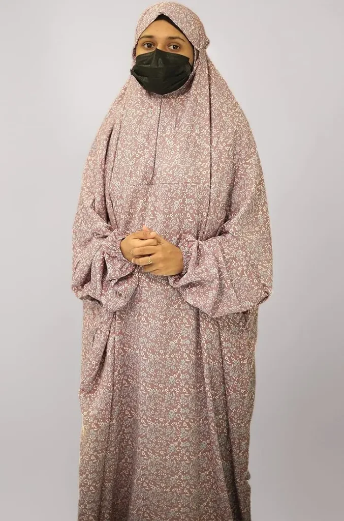 Pair with neutral accessories and a softly styled hijab for a graceful appearance. This outfit works beautifully for formal dinners or family celebrations.