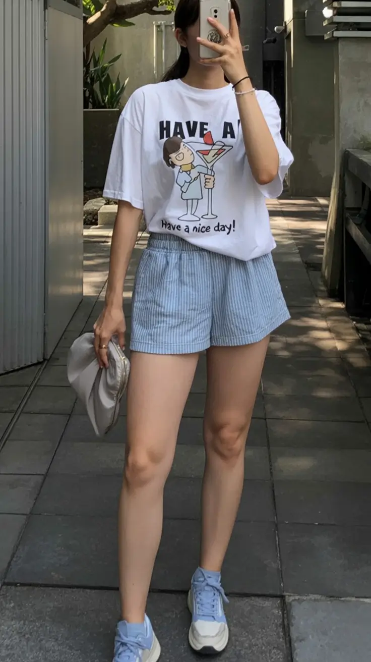 When styling playful graphics, consider pairing them with relaxed bottoms or simple layering pieces. A pastel midi skirt with a soft printed tee creates an approachable yet put-together outfit, while a graphic tee tucked into neutral shorts offers casual chic for city walks or weekend brunches. Footwear can stay minimal classic sneakers, espadrilles, or sandals complete the look without drawing attention away from the playful print. Accessories such as straw hats, simple crossbody bags, or delicate jewelry can enhance the outfit while keeping the vibe lighthearted. The key is balance: graphics should add fun and character without overpowering your capsule wardrobe’s cohesive aesthetic.