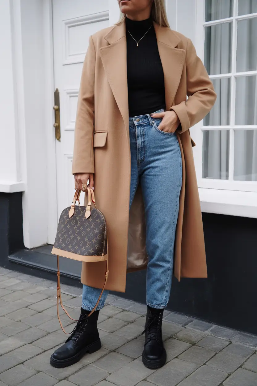 Camel Coat Chic With Denim And a Classic Twist