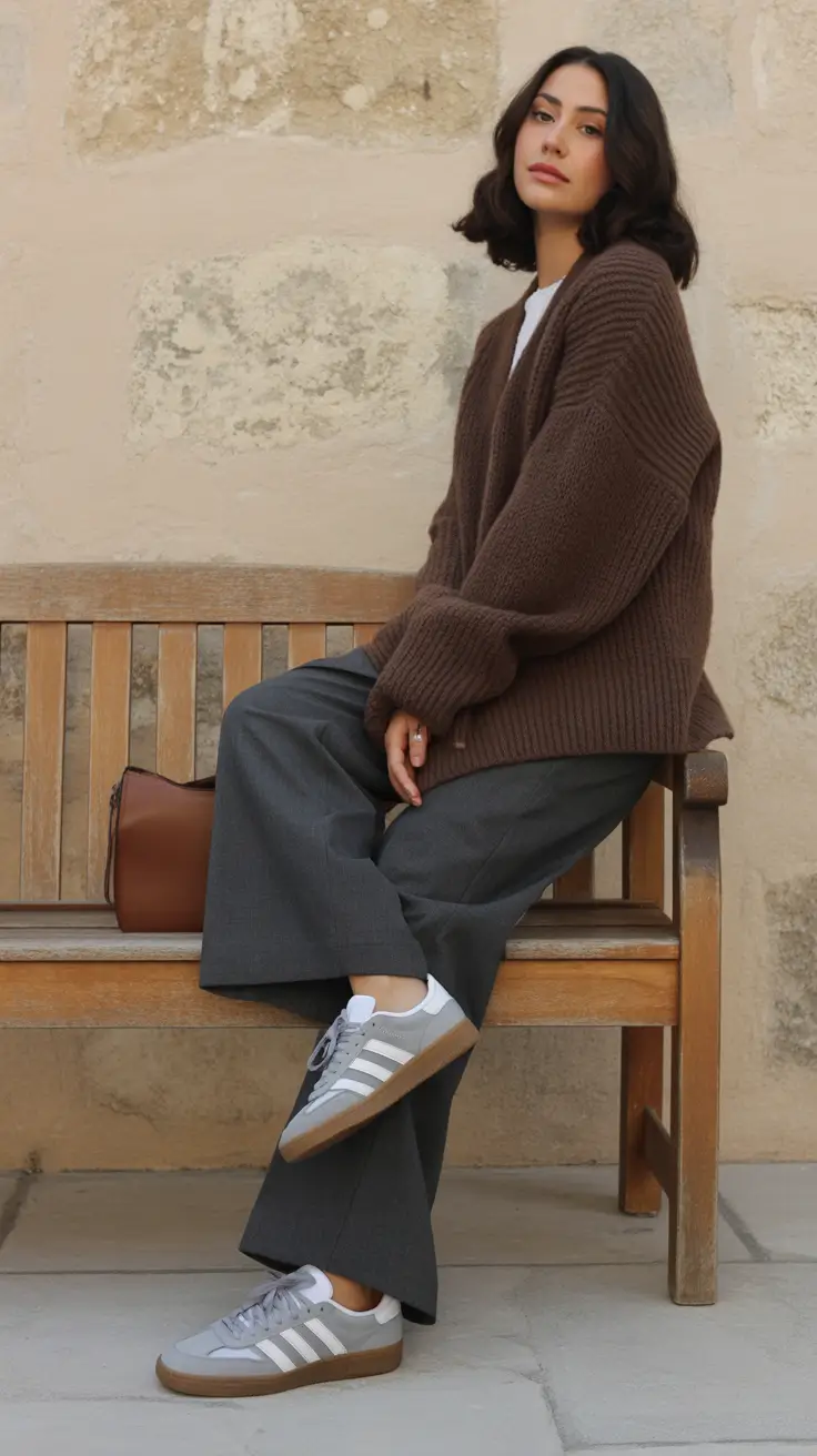 Warm Brown Knits With Rolled Denim Softness bring earthy tones into your spring wardrobe, creating a cozy yet breathable look that feels grounded and stylish. A warm brown lightweight knit adds richness and depth while still remaining soft enough for changing spring weather. When paired with relaxed denim that is slightly rolled at the hem, the outfit feels casual but thoughtfully styled. The rolled detail adds a touch of personality and allows you to show off simple sneakers or comfortable flats. Brown tones are trending strongly in 2026 because they offer warmth without feeling heavy, making them perfect for spring layering. This combination is ideal for outdoor activities, playground visits, or relaxed weekend plans. The soft contrast between warm knit textures and structured denim creates visual balance while maintaining all day comfort.