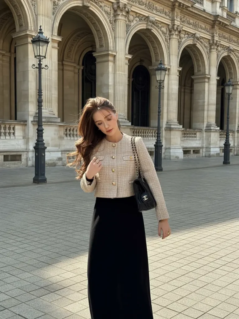 To achieve modern elegance with tweed, focus on clean silhouettes and contemporary cuts. Cropped tweed jackets or tailored blazers with sharp lapels create a fresh interpretation of this classic fabric. Pairing tweed with minimalist pieces, such as straight-leg trousers or a sleek midi skirt, prevents the outfit from appearing dated. Breathable linings and soft blends ensure comfort throughout the day while maintaining structure. Accessories should remain understated, allowing the texture of the tweed to serve as the focal point. Structured handbags and delicate jewelry enhance the refined aesthetic without competing with the fabric’s intricate details. This approach ensures tweed feels updated and relevant rather than traditional or overly formal.