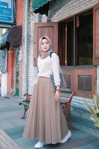 Accessories remain minimal to keep the outfit wearable for daily errands or casual meetups. This hijab outfit idea is perfect for transitional weather and women who love cozy, effortless fashion.