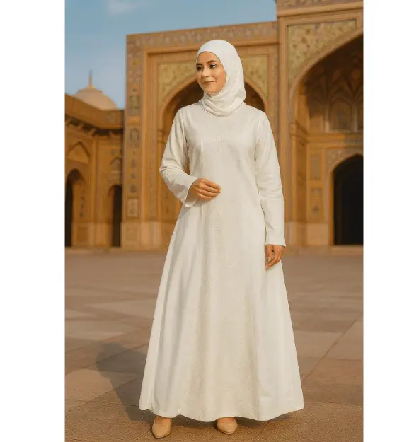 Choose soft fabrics and calming colors for a polished finish. Pair with simple flats and a coordinated hijab to keep the look clean and effortless.