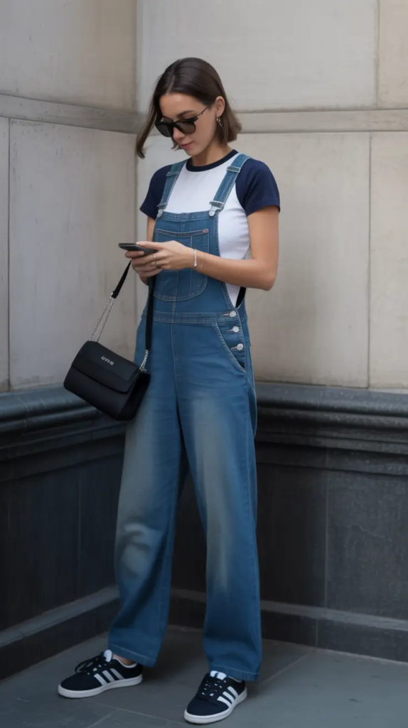 Styling overalls successfully depends on thoughtful accessorizing. Cinch the waist slightly if the cut allows, or roll the hems for a tailored finish. Pair the look with sleek sneakers, loafers, or minimal sandals to keep it contemporary. A structured mini handbag or crossbody instantly elevates the playful nature of the outfit. Jewelry can remain delicate small hoops or layered necklaces soften the denim texture and add subtle femininity. For cooler spring mornings, a cropped cardigan or lightweight jacket layered on top completes the look without hiding its charm.