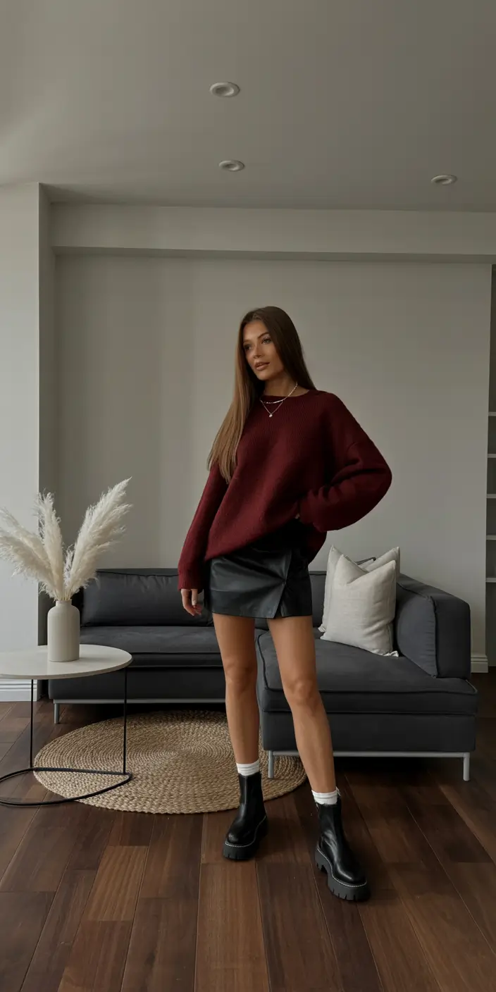 Cozy Burgundy with a Leather Twist